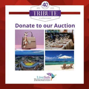 Our annual Tribute to Achievement silent and live auctions and raffle are always a highlight of our event, featuring an exciting array of items from local businesses, unique experiences, unforgettable vacations, and more. By contributing to the auction, you’ll not only showcase your business to a wide audience but also support our mission of serving and supporting those impacted by domestic violence and sexual assault. All auction items will be prominently displayed on our website for attendees to explore, learn more about your business, and connect with you.