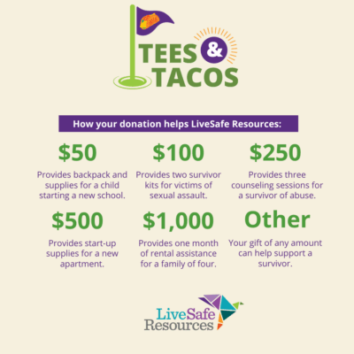 Join us for a pre-Cinco De Mayo celebration with a fun 9-hole scramble that will make for a fun day on the course and put our golfers to the test. Following the tournament will be a fiesta – perfect for golfers and non-golfers! Plus, there will be a raffle with exciting prizes! All proceeds benefit LiveSafe Resources, the primary domestic violence and sexual assault agency serving Northwest Atlanta.